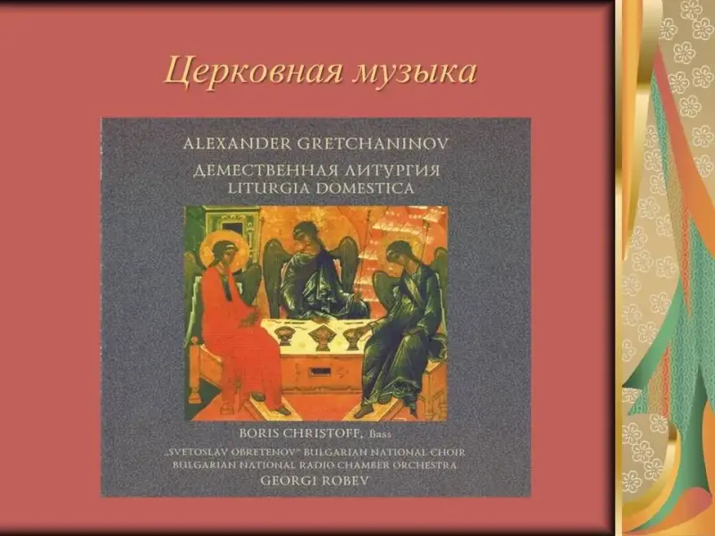 (Слайд 32) Но все - таки самой яркой и значительной областью творчества Гречанинова была церковная музыка. Как церковный композитор он был популярен в дореволюционной России.