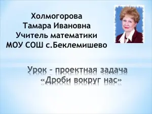 По окончании изучения темы в 5 классе “Обыкновенные дроби” самое время обобщить изученный материал и перенести знания в реальную жизнь, где дроби учащиеся встречают везде. Поэтому целесообразно провести урок–проектная задача “Дроби вокруг нас”.