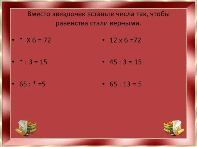 Вместо звездочек и клеточек вставьте числа и знаки математических действий так, чтобы равенство стало верным.