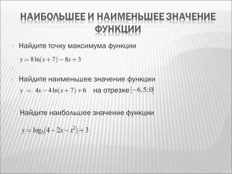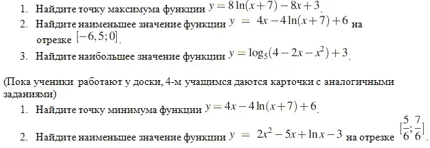 Вспомнить алгоритм нахождения наибольшего и наименьшего значения функции на отрезке и на промежутке.