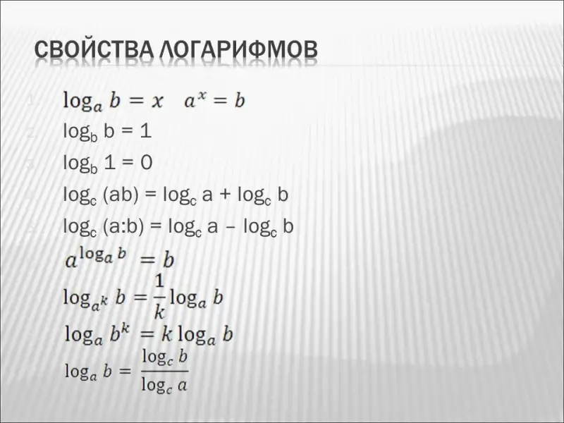 1) Определение логарифма. Какие вы знаете свойства логарифма? (и условия ?)