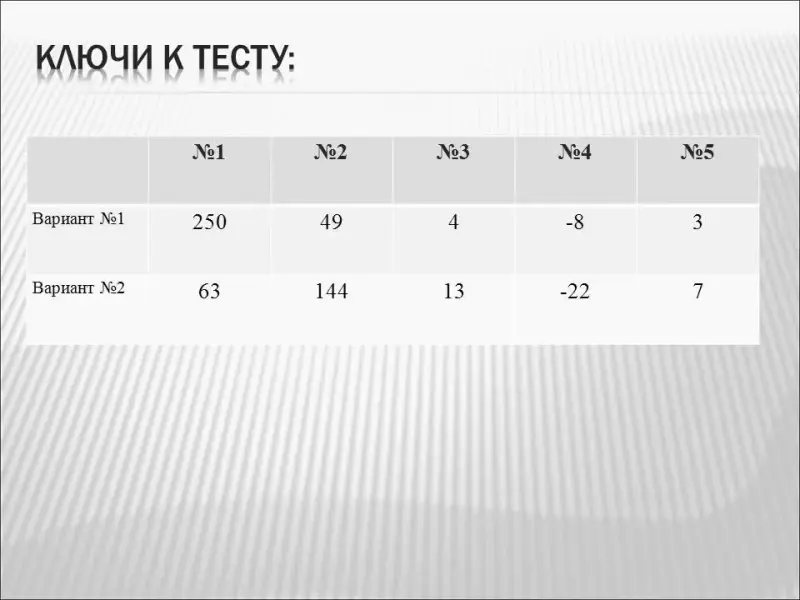 Ключи к тесту