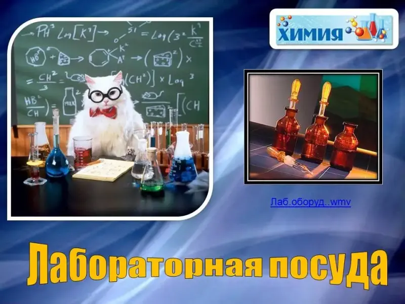 с лабораторной посудой и оборудованием. Просмотр короткого видеоролика по теме. |