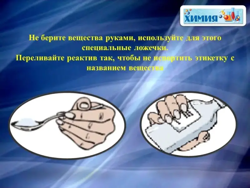 1) научить учащихся безопасным приёмам работы с веществами, с химической посудой и оборудованием.