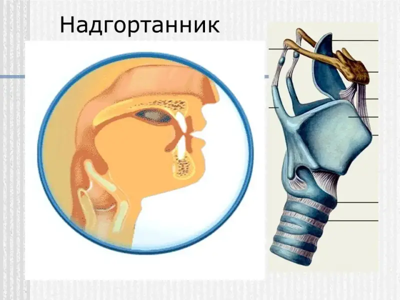 | Гортань | Состоит из нескольких хрящей: щитовидный, надгортанный, черпаловидный. Между хрящами натянуты голосовые связки, образующие голосовую щель. Полость выстлана слизистой оболочкой. |