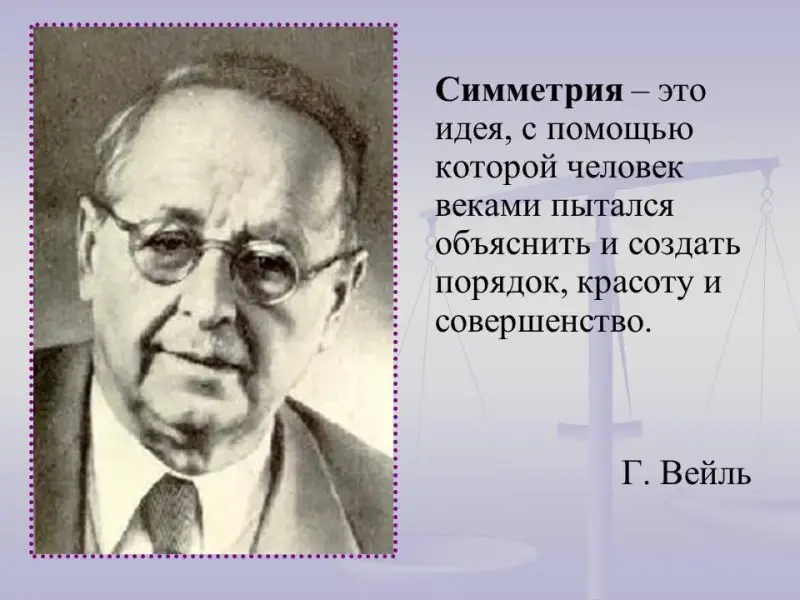 "Симметрия - это идея, с помощью которой человек веками пытался объяснить и создать порядок, красоту, совершенство" Г. Вейль (слайд 5,6,7).
