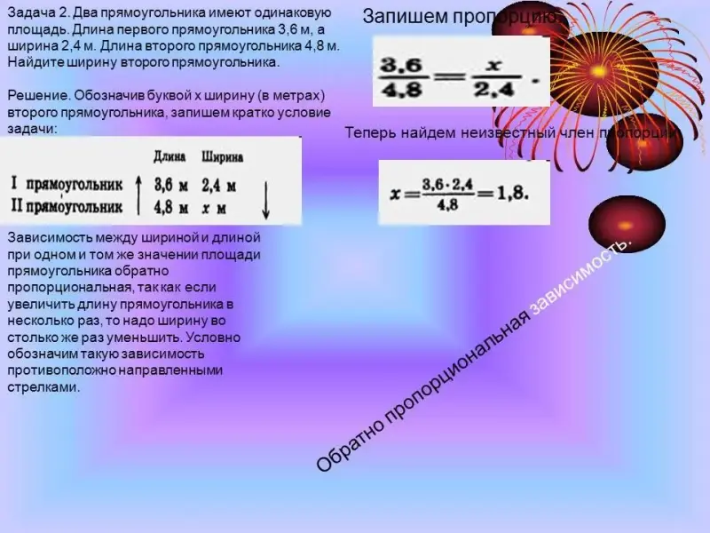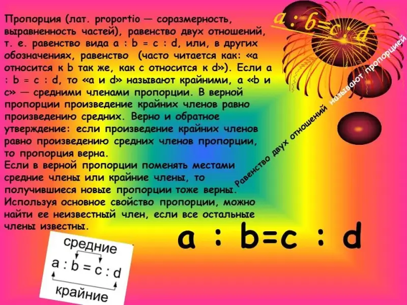 - научить в процессе реальной ситуации использовать определения следующих понятий: "отношение", "пропорция","правило нахождения неизвестного члена пропорции" , "прямая и обратная пропорциональность".