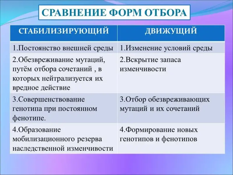 Вывод: движущая и стабилизирующая формы естественного отбора тесно связаны друг с другом.