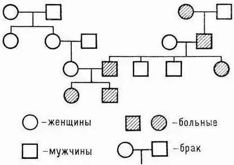 - схемы родословных с аутосомно-рецессивными заболеваниями и заболеваниями, сцепленными с полом.