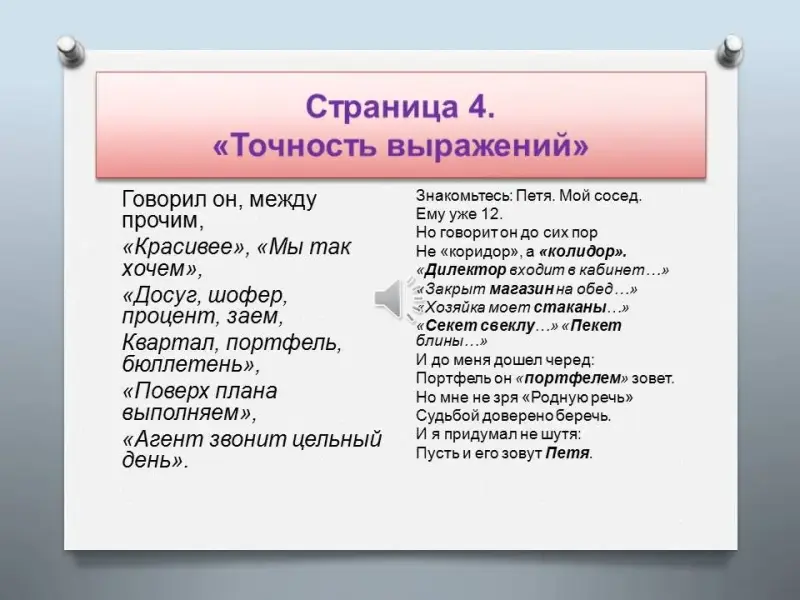 (Мы будем говорить об устной речи, ее красоте и чистоте)