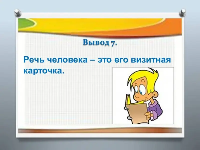 (Слайд 19) Вывод 7. Речь человека - это его визитная карточка.
