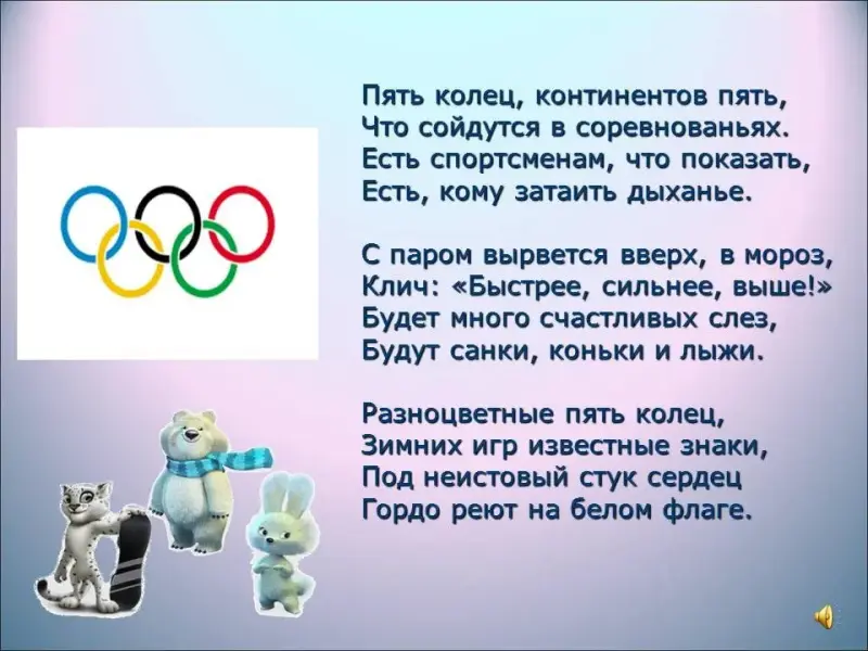 Мы встретились с вами в очень знаменательное для нашей страны время - время проведения Зимних Олимпийских Игр. Поэтому наш урок мы посвятим спортсменам, которые стараются показать наилучший результат. (Презентация).