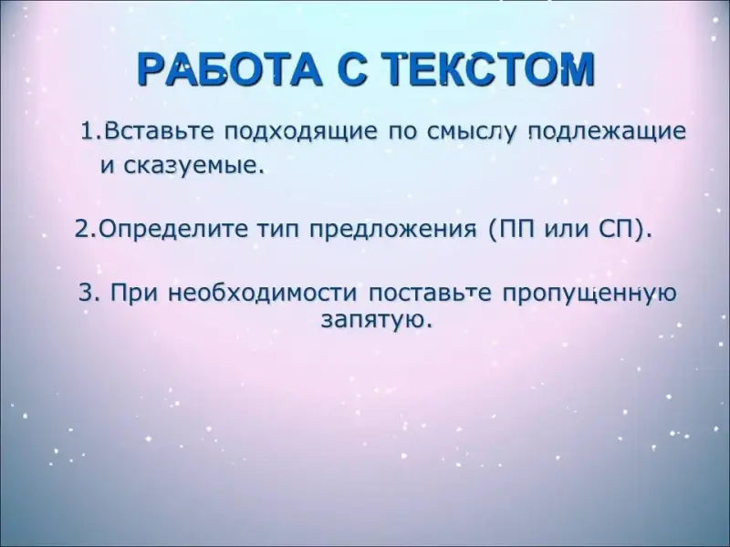 В каждое из пяти предложений необходимо вставить подходящие по смыслу подлежащее и сказуемое, а также при необходимости пропущенные запятые.