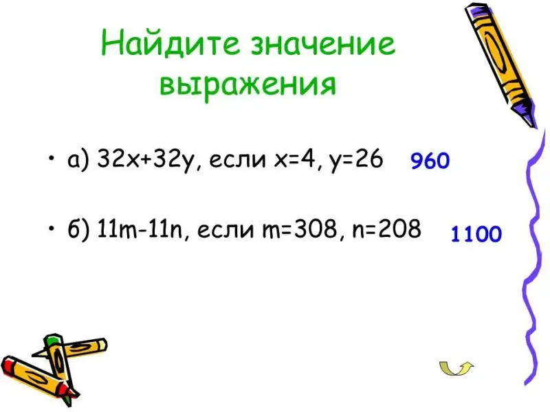 С помощью распределительного свойства умножения можно упрощать выражения. Например: