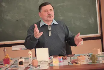 Дал две минуты на размышления. Учителя поочередно предлагали варианты ответов, но они все были неверными. Лишь только когда кто-то выкрикнул правильный ответ - 2, он рассказал, что эта задача была предложена московским школьникам на пробном экзамене в форме ЕГЭ. И предложил угадать голосованием, какой процент школьников справились с этим заданием, уменьшая его постепенно от 50% до 1%. Оказывается, этот процент был менее 1.