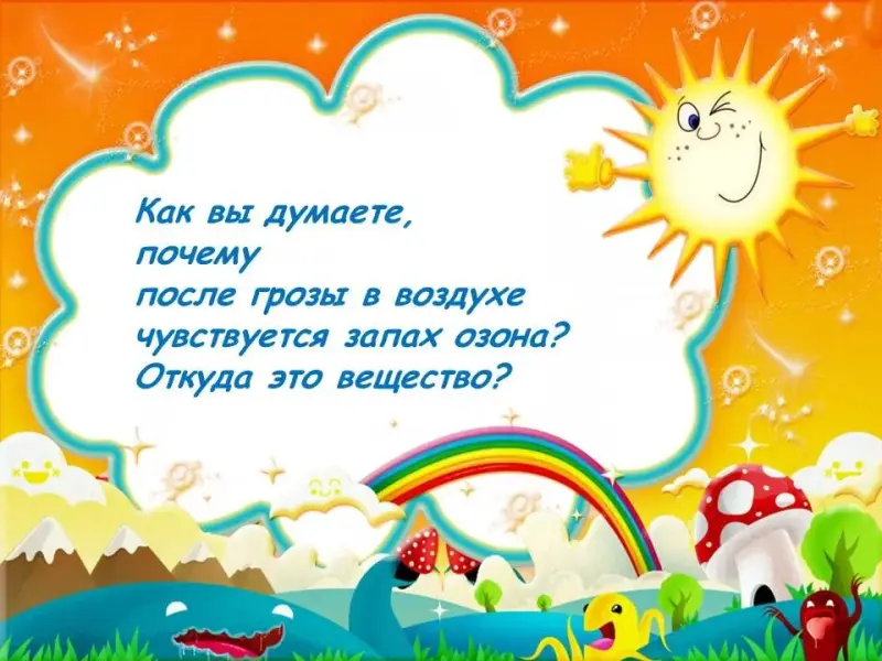 - Какие изменения происходят при физических явлениях, образуется ли при этих явлениях новые вещества? Как вы думаете, почему после грозы мы чувствуем приятный запах? Это запах озона. Откуда это вещество?