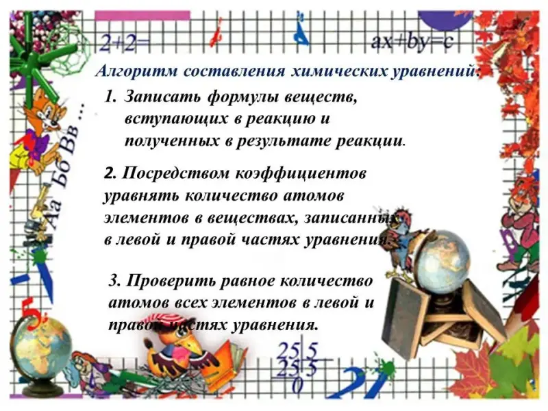 Учащиеся при помощи учителя определяют алгоритм составления химических уравнений: