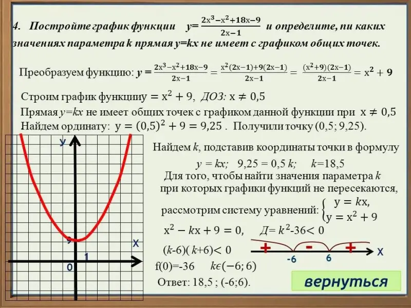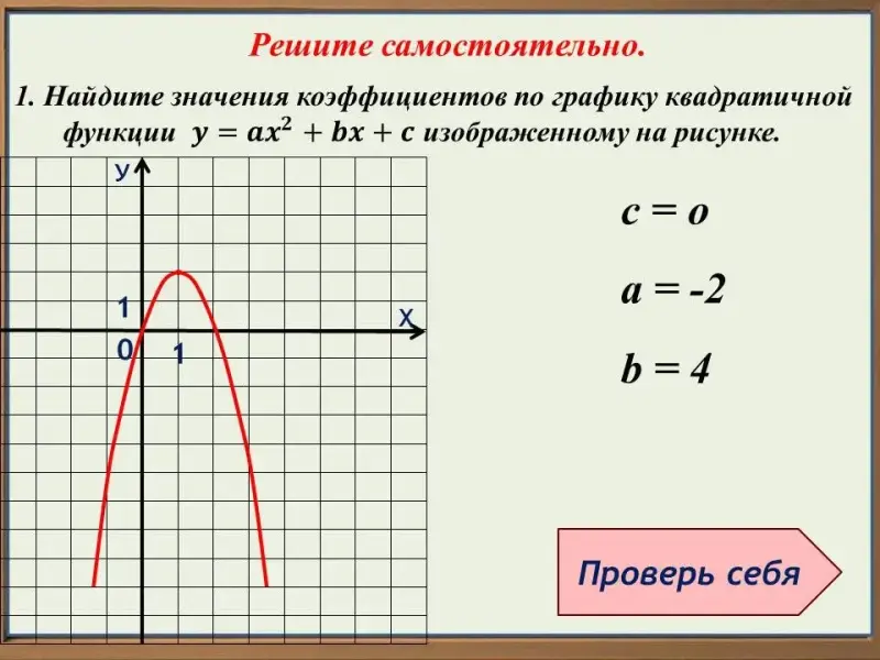 4. Знакомство с алгоритмом, который позволяет находить значения коэффициентов по графику квадратичной функции.