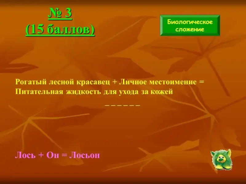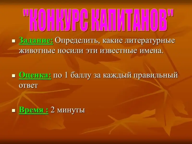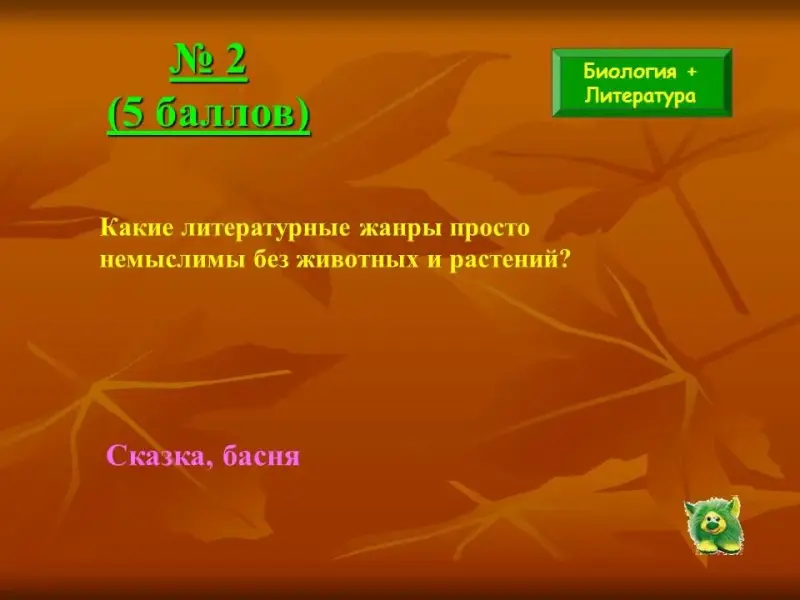 Задание: Первая команда называет растение, следующая команда называет животное, название которого начинается на последнюю букву предыдущего животного и так далее.