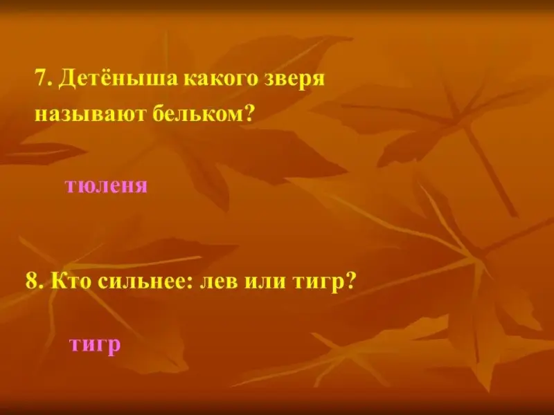7.Детёныша какого зверя называют бельком? (тюленя)