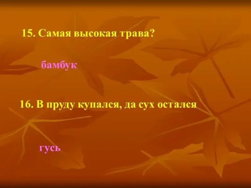 1.Если вы в лесу поранили ногу, какое растение поможет вам? (подорожник)