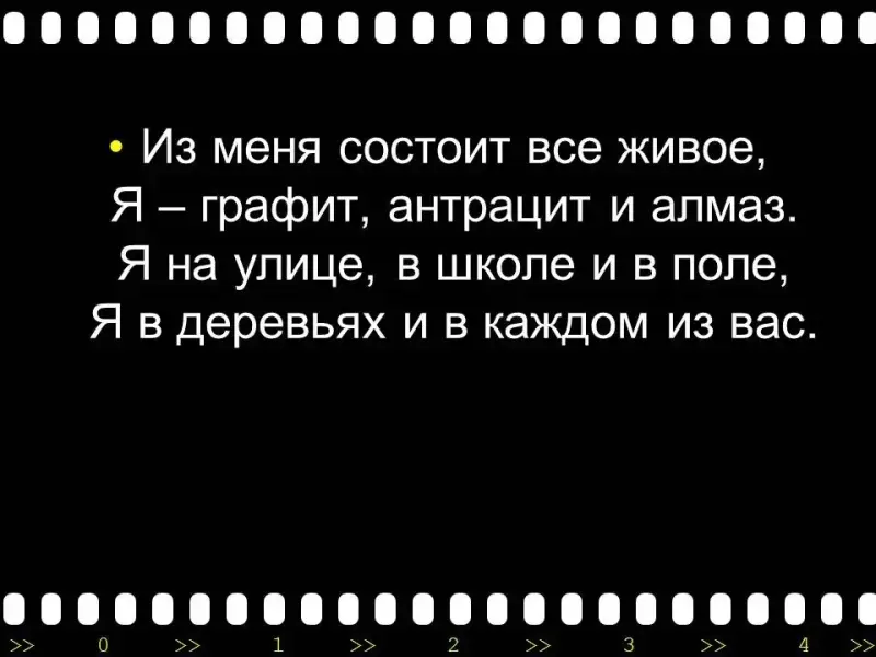 Я - алмаз в короне. Я - графит в карандаше. Я - уголь в шахте. |