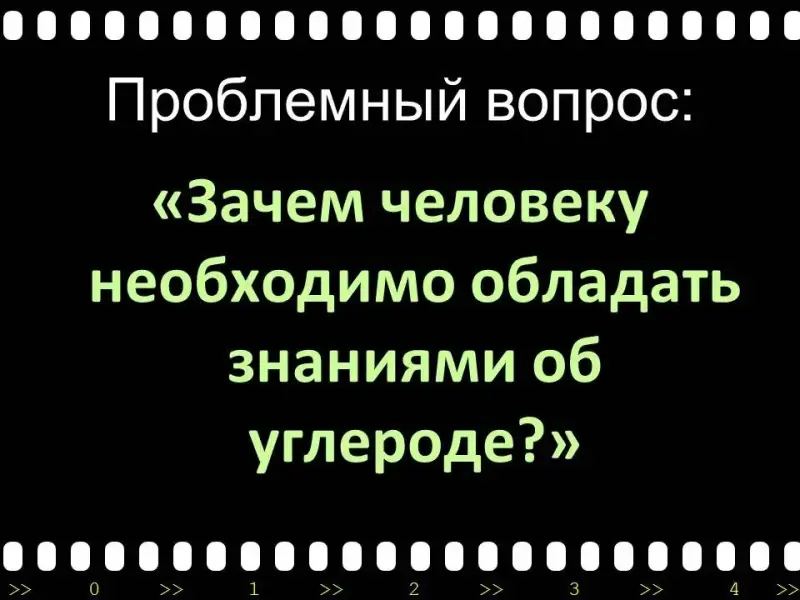 Проблемный вопрос: "Зачем человеку необходимо обладать знаниями об углероде?"