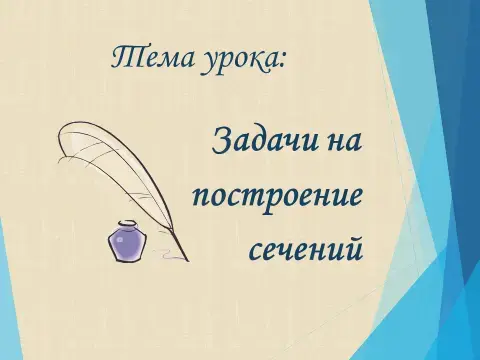 Для решения многих геометрических задач, полезно строить на рисунке их сечения различными плоскостями. Сегодня на уроке мы разберем основные приемы построения сечений тетраэдра и параллелепипеда. Уточним, сначала, что понимается под сечением.