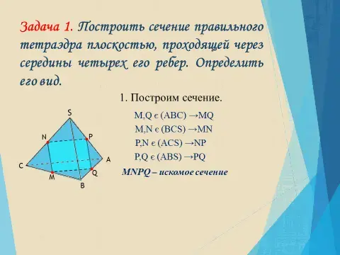 Прежде, чем приступить к построению сечений тетраэдра и параллелепипеда, следует иметь в виду