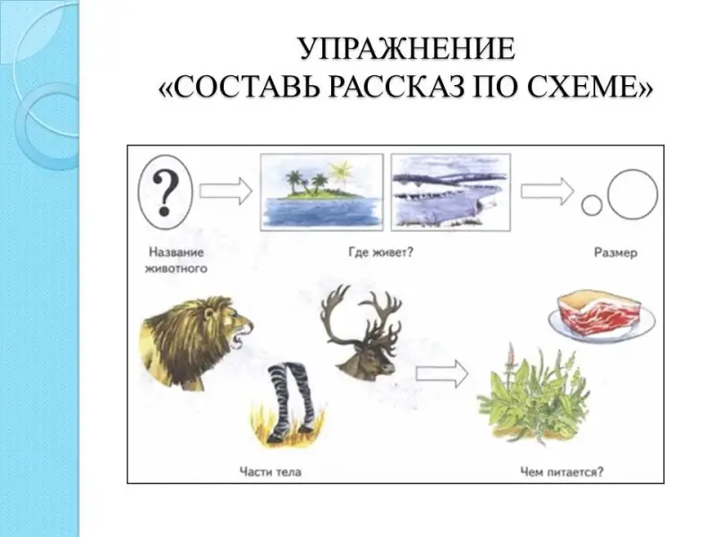 Логопед вместе с ребенком вспоминает значение схем, и составляют рассказ о животном. На пример: