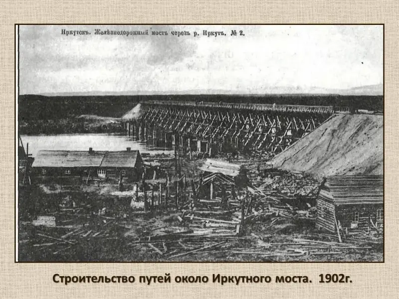 1891 год - начало строительства Транссибирской железнодорожной магистрали. Стоимость строительства Транссиба с 1891 по 1913 год составила 1 455 413 000 рублей (в ценах 1913 года). Всё строительство было осуществлено за счёт казны, без иностранных заимствований. Министром путей сообщения, курирующим строительство дороги, был М.И. Хилков. Почти все работы производились вручную, с помощью топора, пилы, лопаты, кайла и тачки. Несмотря на это ежегодно прокладывалось около 500-600 км железнодорожного пути. В разгар строительных работ на сооружении Транссиба было занято 84-89 тыс. человек. Сооружение Транссибирской магистрали осуществлялось в суровых природно- климатических условиях. Исключительные трудности для строителей представлял участок вокруг Байкала. Здесь приходилось взрывать скалы, прокладывать тоннели, возводить искусственные сооружения в ущельях горных речек, впадающих в озеро Байкал.