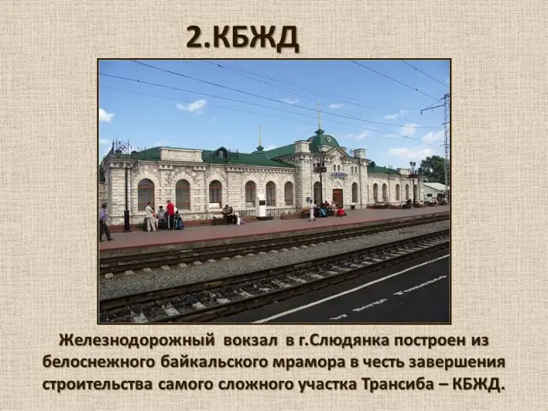Через десять лет был сдан в эксплуатацию второй путь, его укладывали в 1911-1915 гг. в более спокойном режиме, не прекращая железнодорожных перевозок. В честь завершения строительства самого сложного участка Трансиба - КБЖД в г.Слюдянка был построен из белоснежного байкальского мрамора железнодорожный вокзал. До 1949 года по Кругобайкальской дороге проходил основной ход Транссиба, переведённый в 1949 году на вновь построенный дублирующий участок железной дороги от Иркутска через Большой Луг до южной оконечности Байкала (станция Слюдянка-1). После ввода в эксплуатацию дублирующего участка КБЖД потеряла былое значение. После того, как построили Иркутскую ГЭС, от этой дороги остался самый живописный участок в 140 километров.