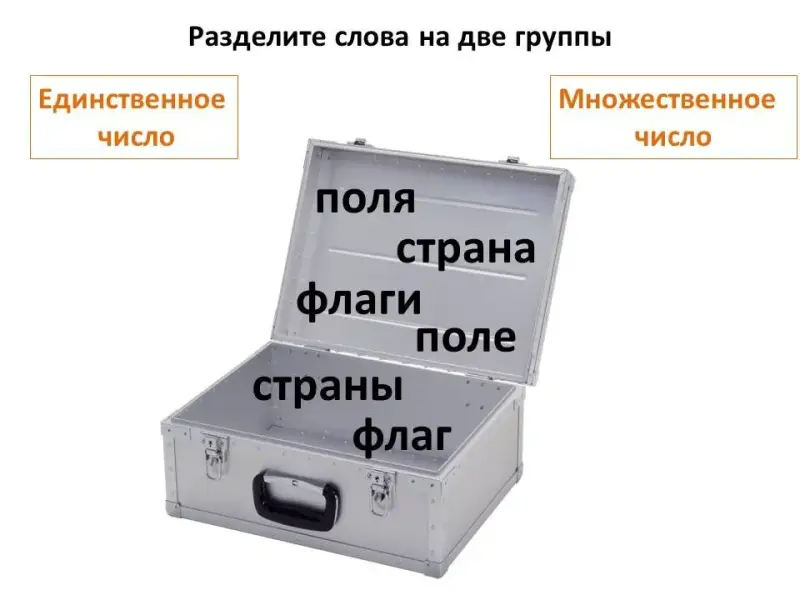 - Имена существительные, обозначающие один предмет, находятся в единственном числе.