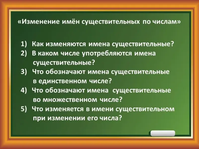 - Что изменяется в имени существительном при изменении его числа? (При изменении существительного по числам в нем меняется окончание.)