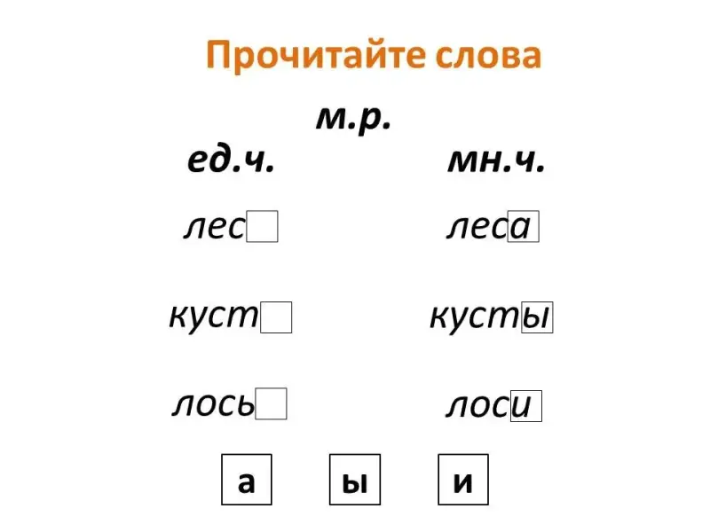 Сделайте вывод: какие окончания могут быть у существительных мужского рода во множественном числе? (У существительных мужского рода во множественном числе окончания -а, -и, -ы.)