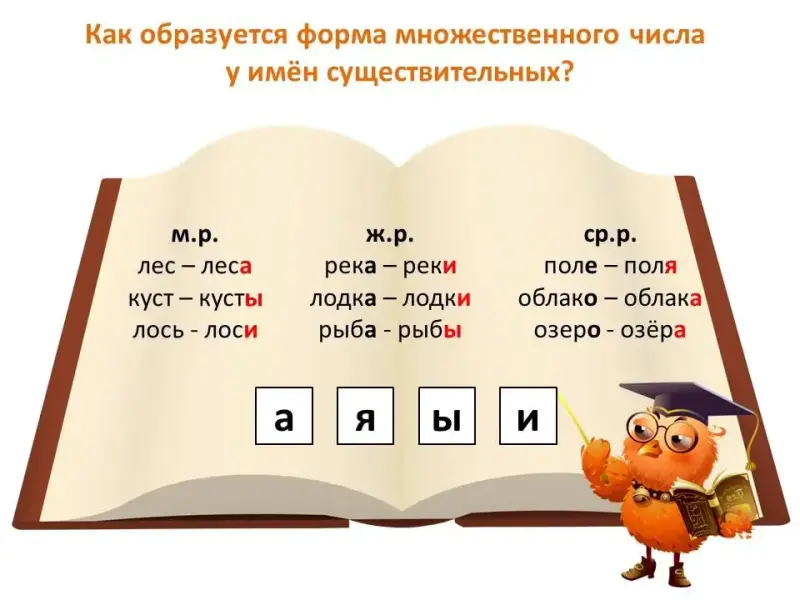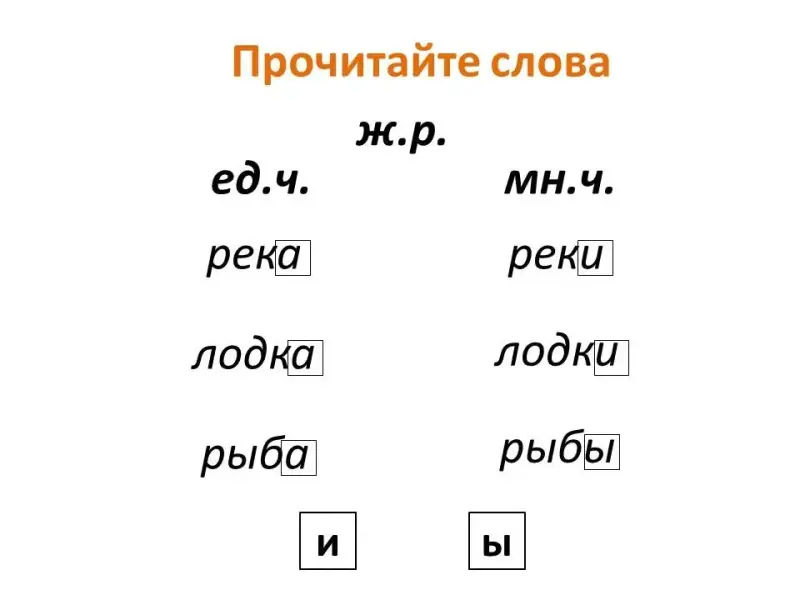 Образуйте форму множественного числа. (Реки, лодки, рыбы.)