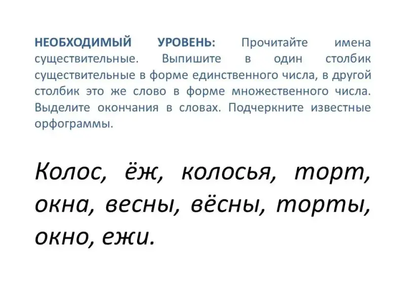 - Что обозначают имена существительные во множественном числе? (Существительные во множественном числе обозначают несколько предметов.)