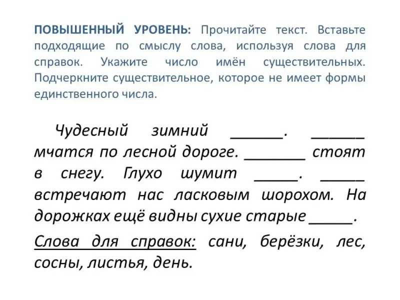 Какое умение развивали при выполнении этого задания? (Умение определять число имен существительных.)