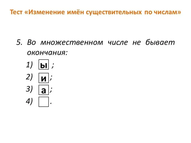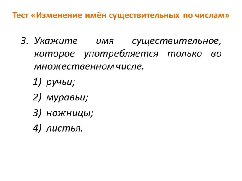 Укажите имя существительное в форме множественного числа (СЛАЙД 48):