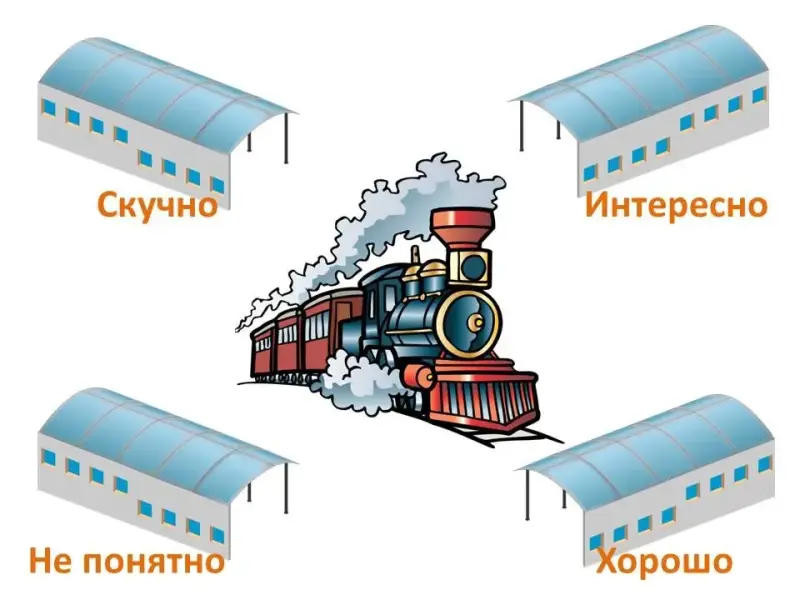 - плакат с изображенными "станциями" и надписями "хорошо", "интересно", "скучно", "не понятно";