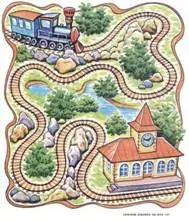 Детям предлагается найти глазами верхнюю точку на рисунке (поезд), поставить на нее указательный палец и произнести, не прерываясь, звук у на одном дыхании, сопровождая это