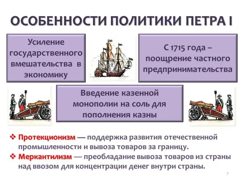 Новые понятия: меркантилизм, протекционизм, подушная подать, приписные крестьяне.