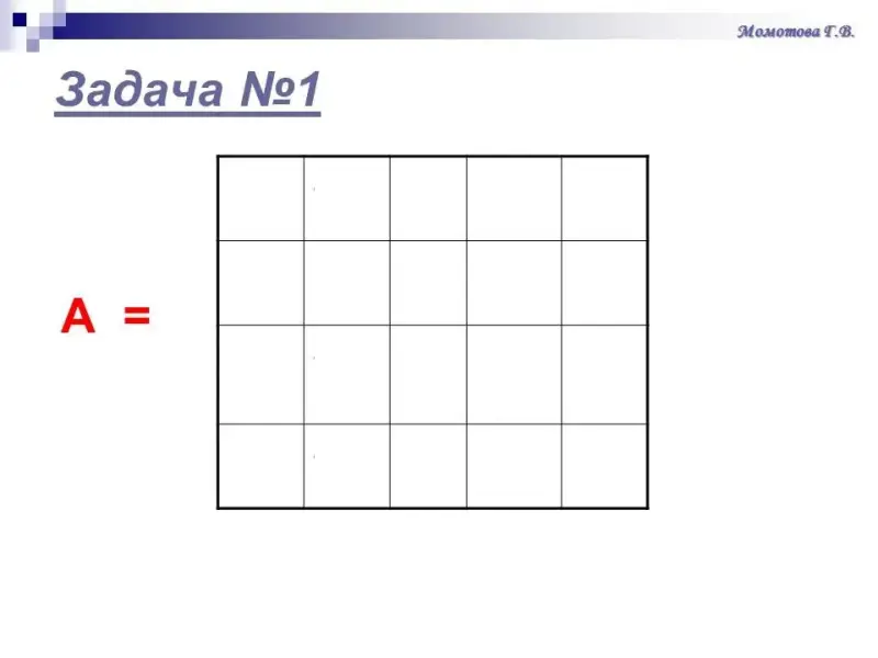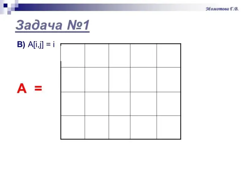 Задача 1. Определить, как выглядит таблица А, состоящая из 4 строк и 5 столбцов, если для любых i и j: