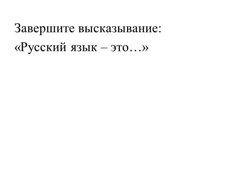 - Приглашая вас к разговору, я хочу предложить вам закончить фразу: "Русский язык - это…". Мне хотелось бы услышать 2-3 тезиса от каждой группы. Тезисы запишите в РК. (Ответы учащихся).