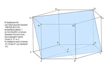 а) постройте сечение призмы плоскостью, проходящей через точки A, F1 и C; б) Найдите расстояние от точки F1до прямой AC.