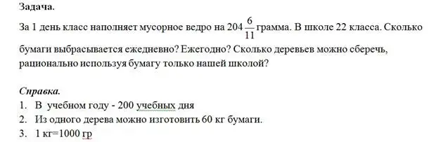 Учитель математики: Сейчас мы в группах посчитаем, сколько мы можем спасти деревьев за 1 год нашей школой.