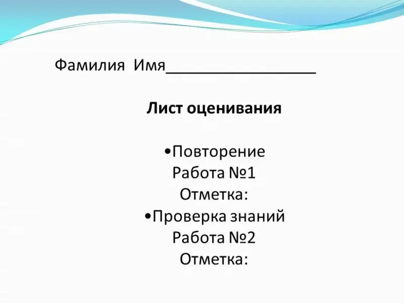 Результаты своей работы вы также будете отмечать в листах оценивания.