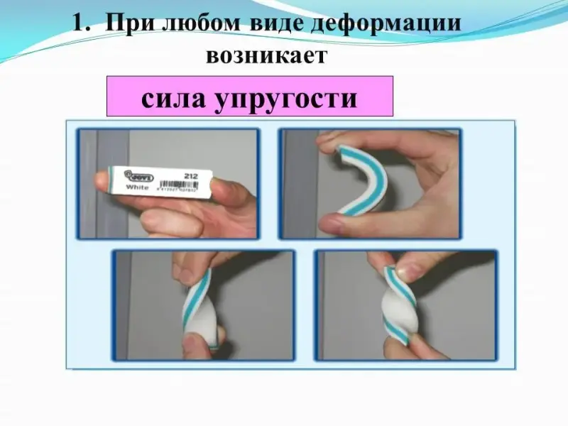 - При любом виде деформации возникает ... (сила упругости).