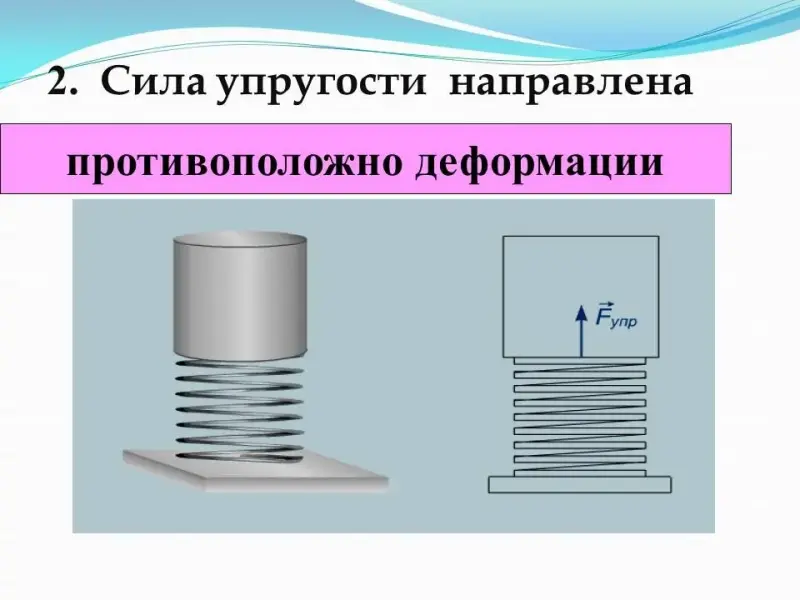 - Сила упругости направлена ...(противоположно деформации).