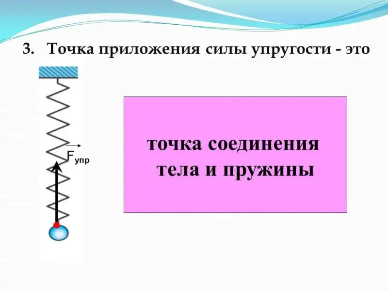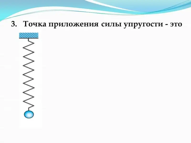 - Точка приложения силы упругости - это...(точка соединения тела и пружины).